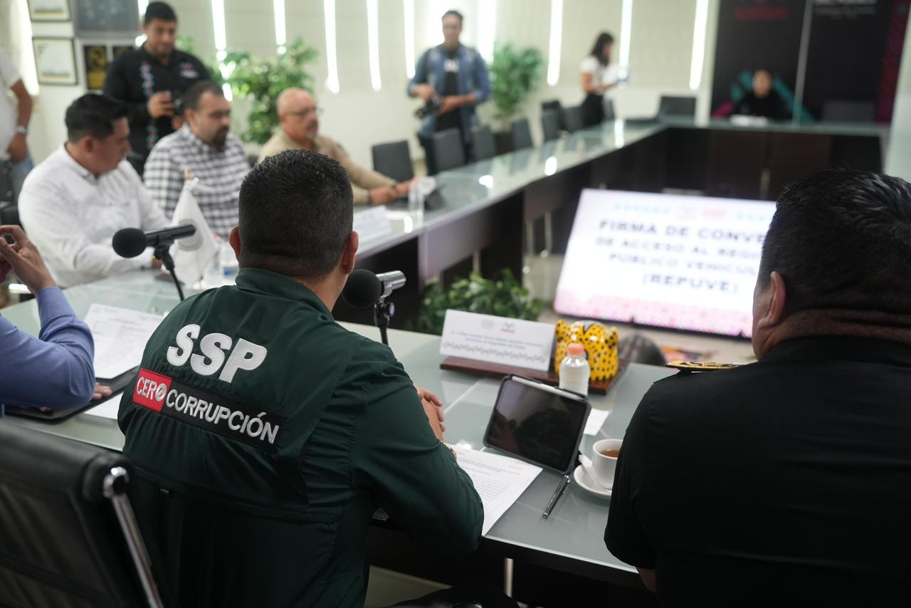 Secretario de Seguridad del Pueblo firma convenio de acceso al Registro Público Vehicular (Repuve), con el secretario Ejecutivo del Sistema…