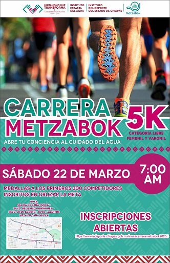 El Instituto Estatal del Agua (Inesa) y el Instituto del Deporte (Indeporte) anunciaron este martes la carrera “Metzabok 5K”, que…